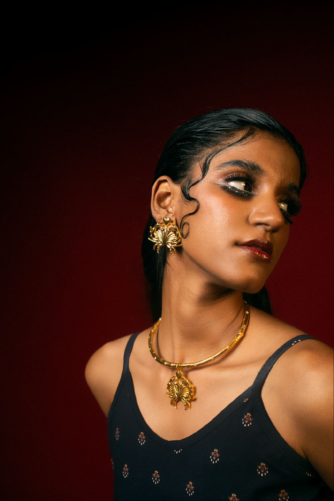 Handmade and handcrafted original design by AISHR in 22k gold plated brass.
