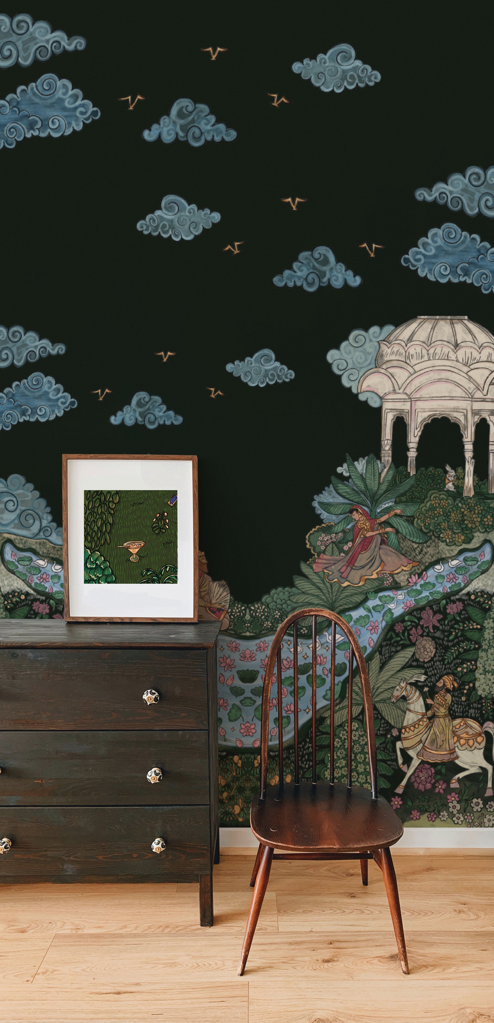 We offer a variety of paper options (wallpapers) at different price points. To explore our full range and choose the perfect wallpaper for your home, please send us an email to request your wallpaper book. A wallpaper book will be chargeable, but you can use the pages from it as art prints and frame them.