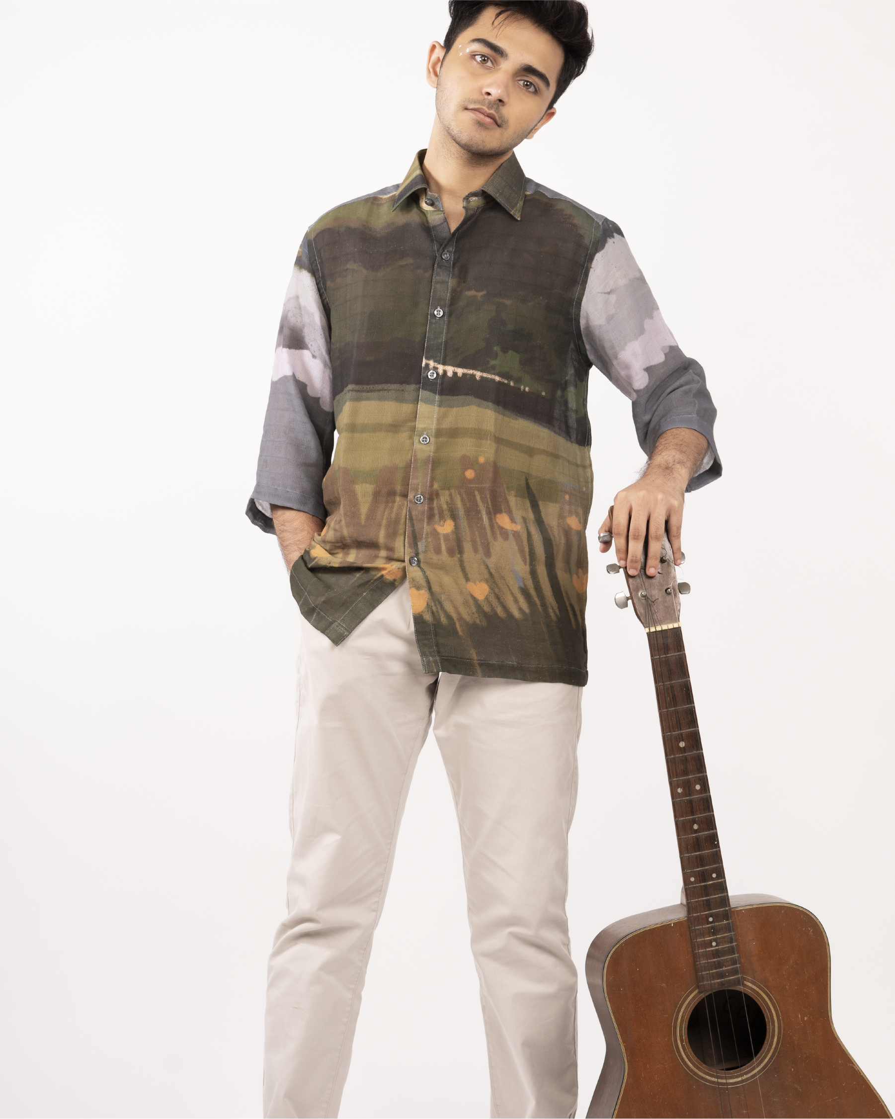 The colours on the fabric look different in different lights - please note that both the images are of the same shirt (shoot and studio flats) these look different in person as well. If you receive a product that looks like it's a different colour, please note that we check every batch and send it out - what we send you will be the final colour which is not a mistake.
