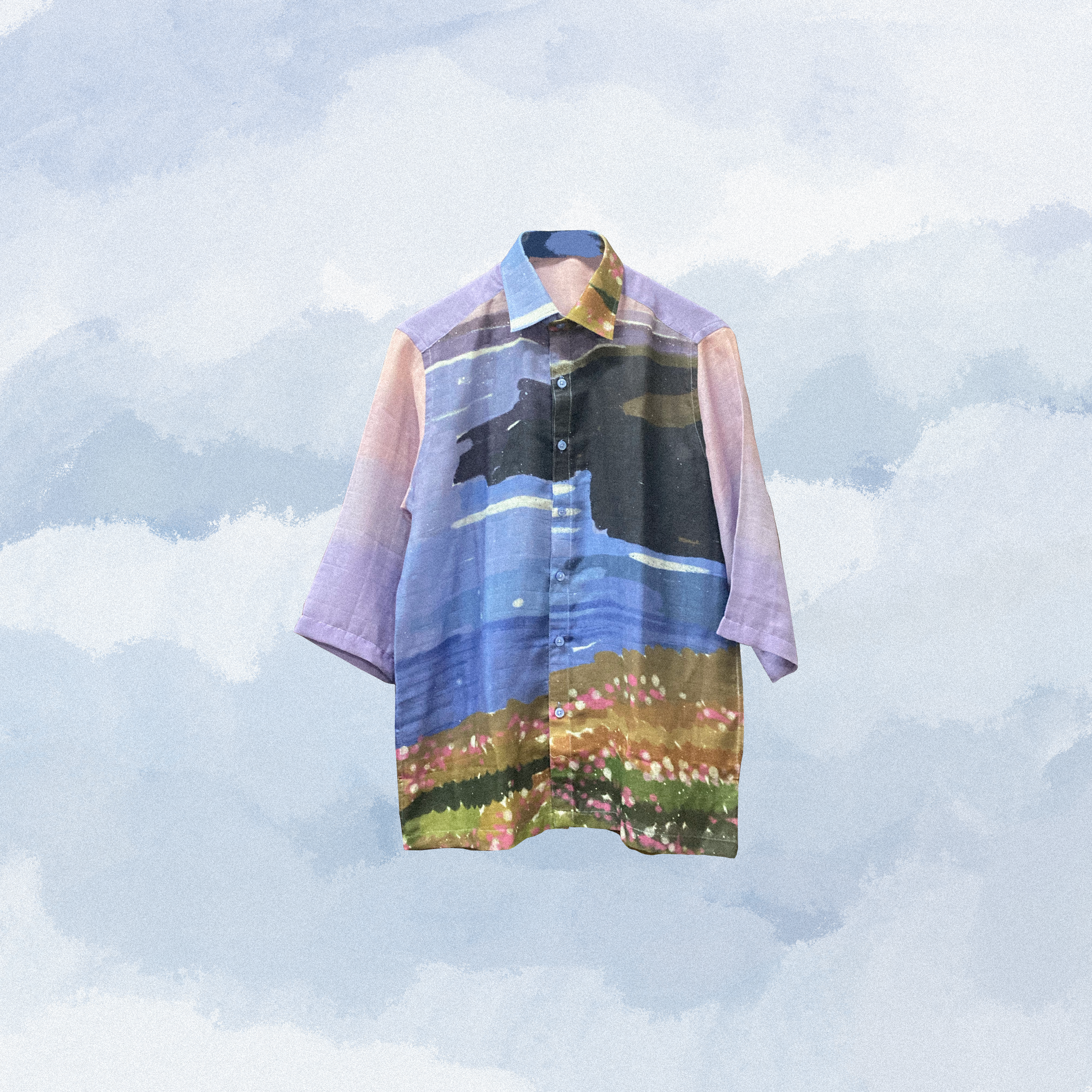 This shirt is made from organic muslin and printed with biodegradable dyes. Each shirt is cut and made upon order, and therefore the print placement will vary from the design shown on screen.