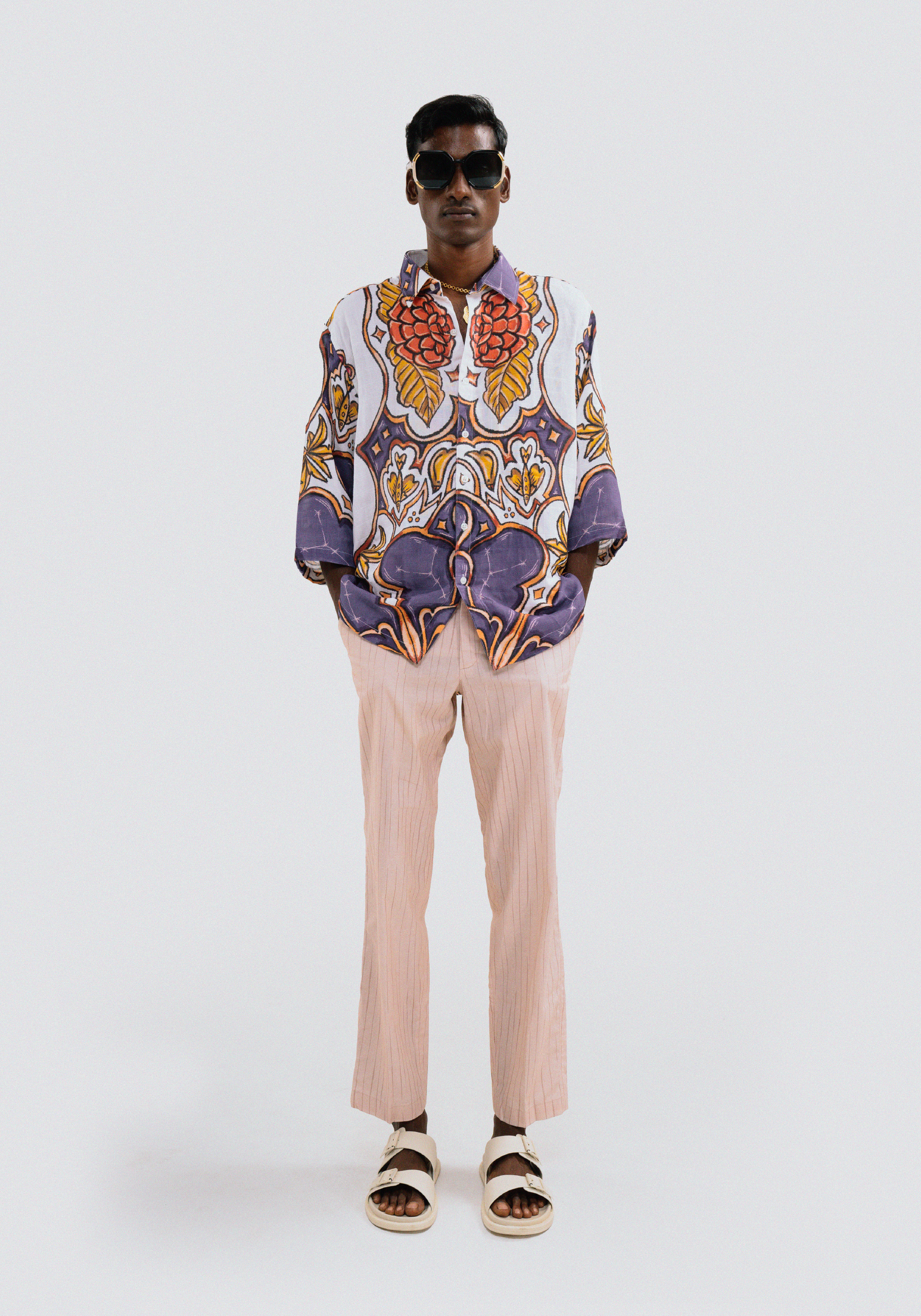 Please handle with care—muslin is a delicate fabric and may tear if it comes into contact with rough or abrasive surfaces. To preserve its quality, avoid machine washing or excessive friction. Be mindful when leaning against textured surfaces, such as broken bamboo, rough wood, or similar materials, as they may pull or snag the fabric's yarns.This garment is designed for gentle wear and should not be handled roughly. Light fraying is natural and not a defect. The garment may also fade slightly over time. To maintain its appearance, keep it neatly pressed and handle it with care.