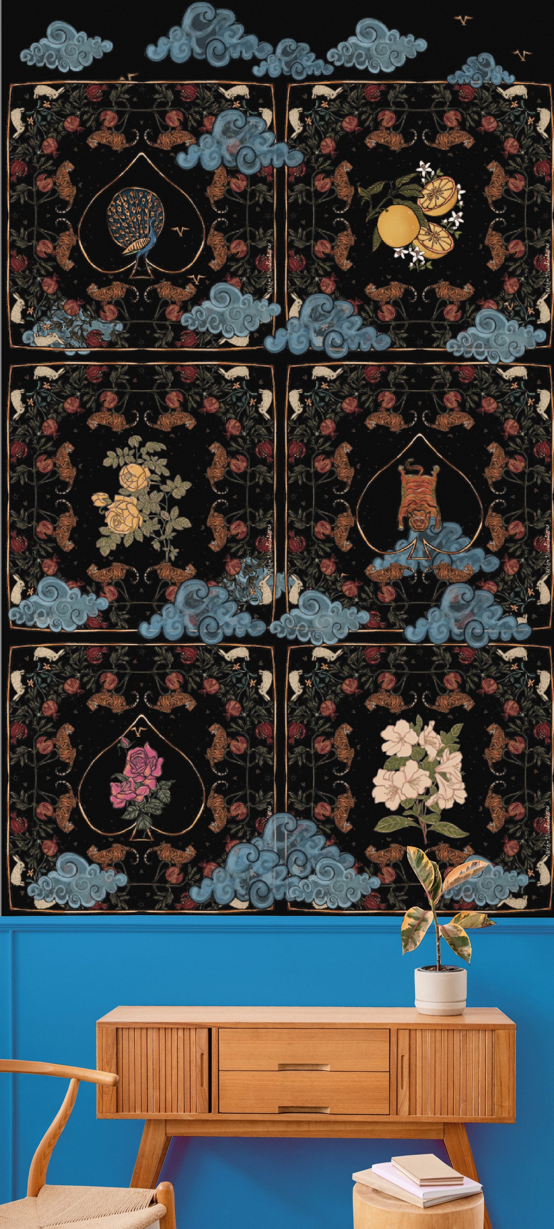 This panel can also be customized to fit your wall if you provide us with the measurements. As a repeat wallpaper, it will run seamlessly across your walls, ensuring a cohesive look. Please reach out if you have any questions.