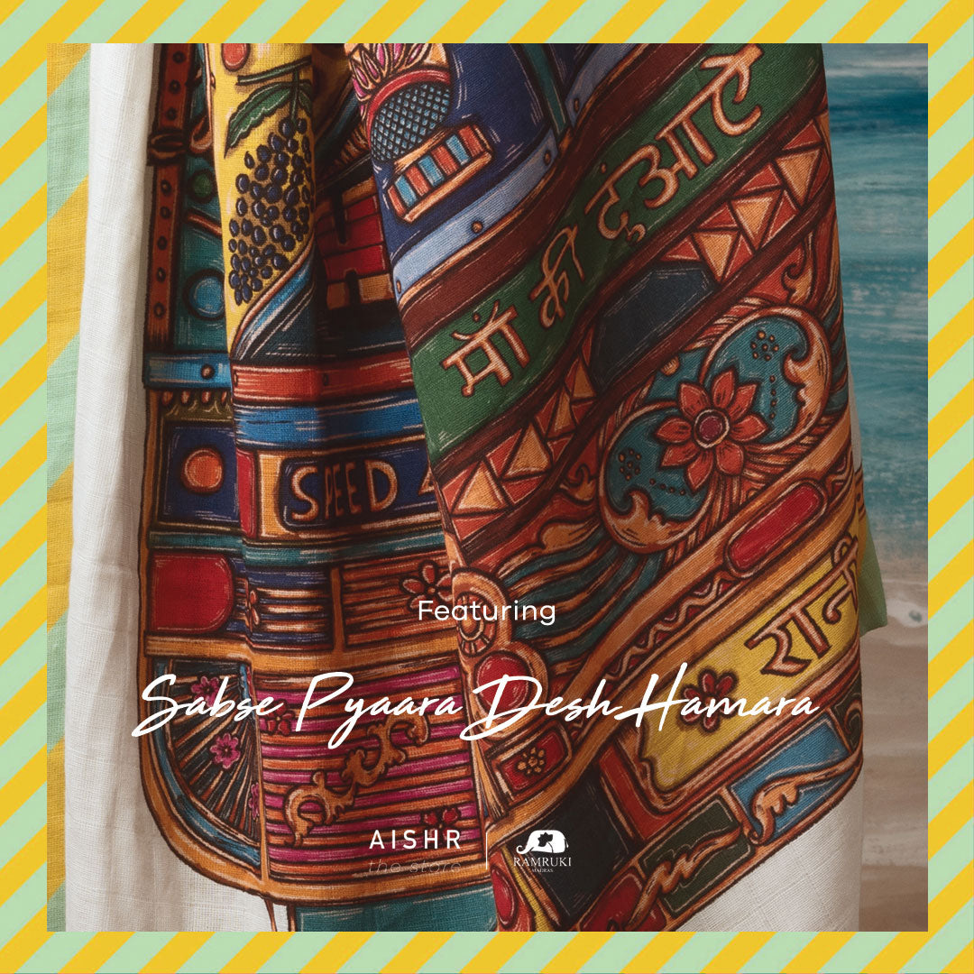 Order today - Sabse Pyaara Desh Hamara is an exclusive Aishr print, printed on sustainable muslin fabric with biodegradable dyes.