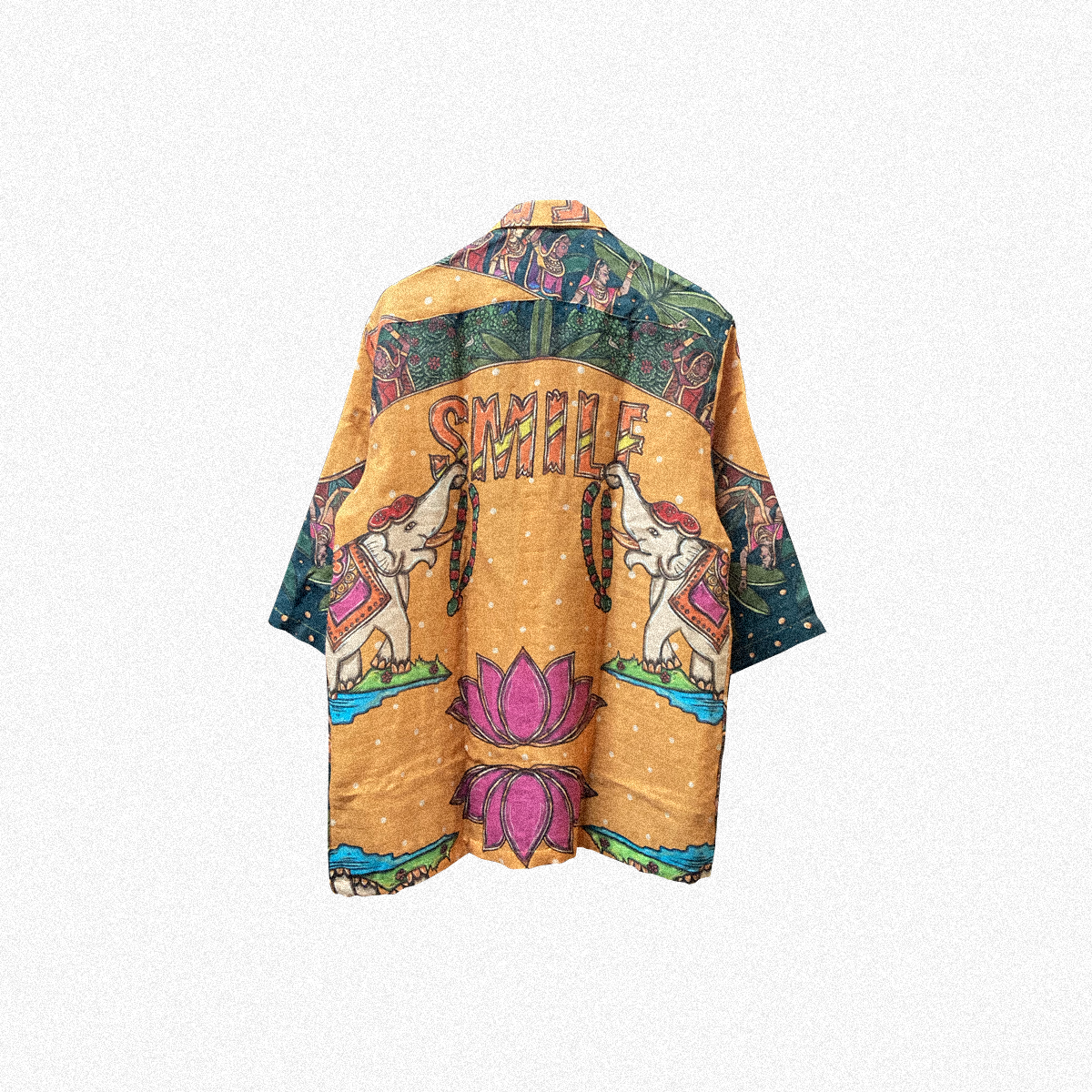 This shirt is made from organic muslin and printed with biodegradable dyes. Each shirt is cut and made, and therefore the print placement will slightly vary from the design shown on screen.